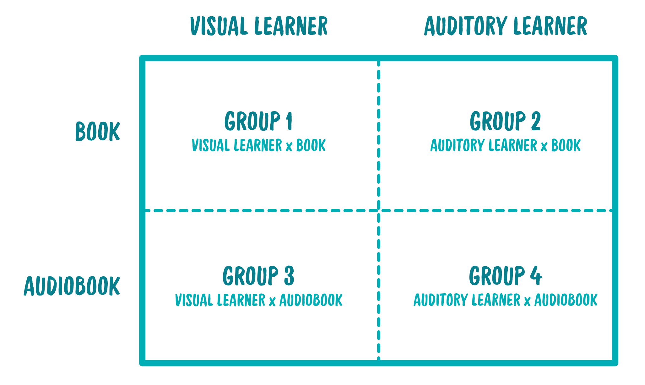 First, the researchers determined each participant’s preferred learning style. All participants completed a standardized online learning-style questionnaire that classified them as either preferring to learn new information by listening to it or reading it.
