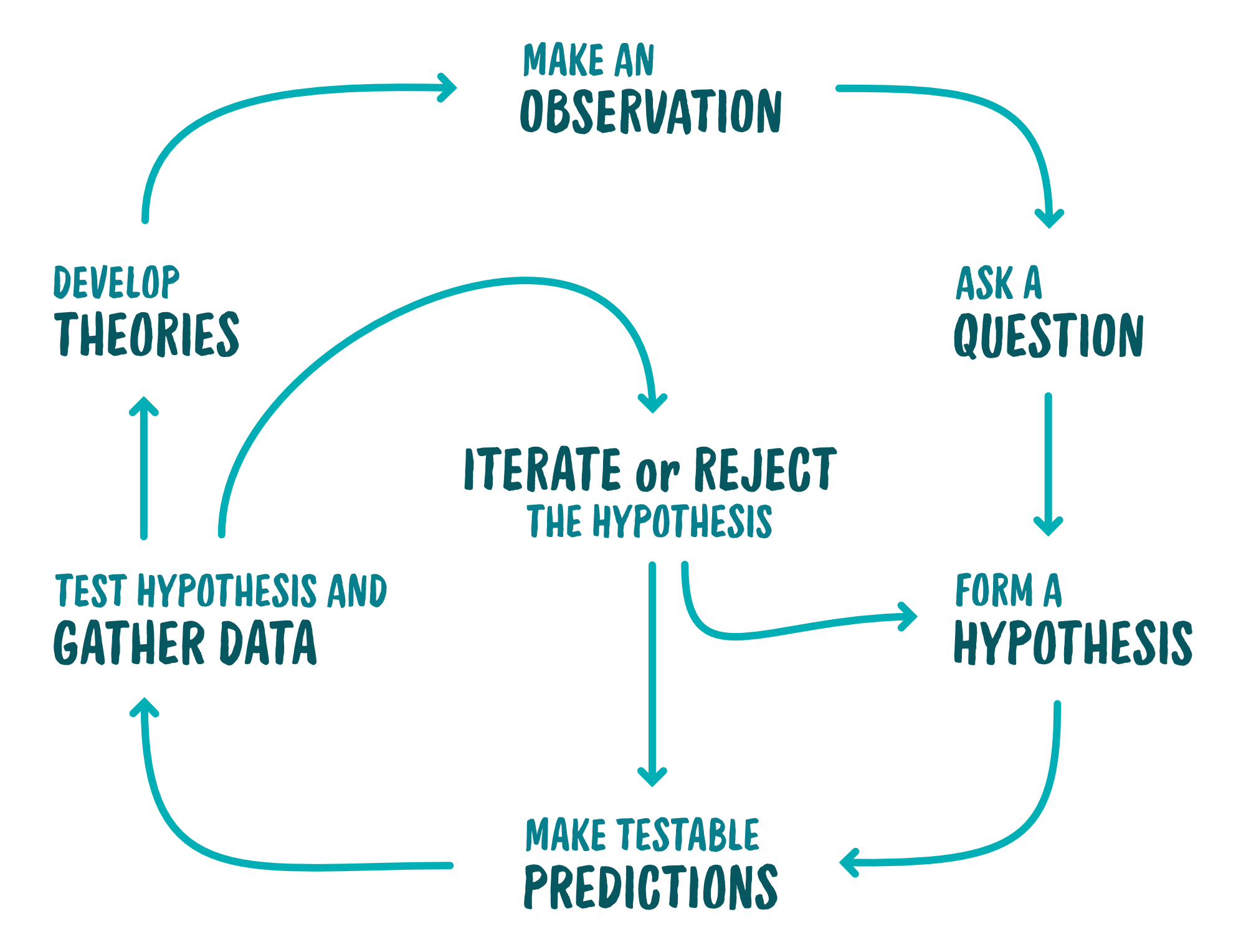 Although there are many possible causes that might explain the observation we made and the question we asked, it’s impossible to test them all. (And even more impossible to test them all at once!) Instead, we narrow in on a very limited number of potential explanations for the observation - deductions. If we can test these deductions using the scientific method, that’s when our explanation becomes a hypothesis.